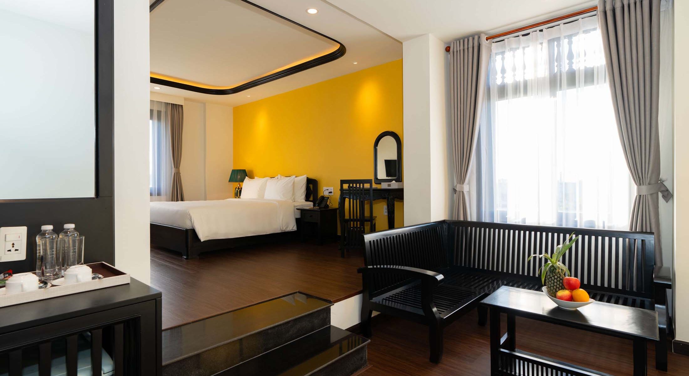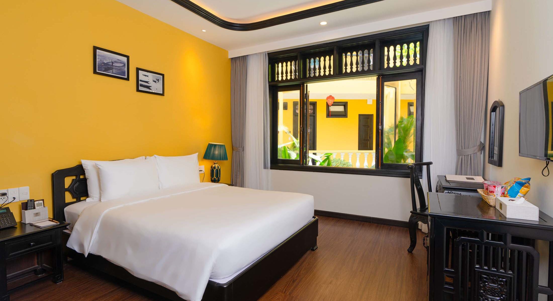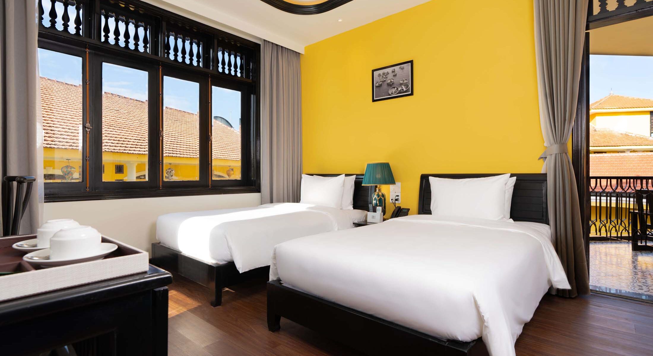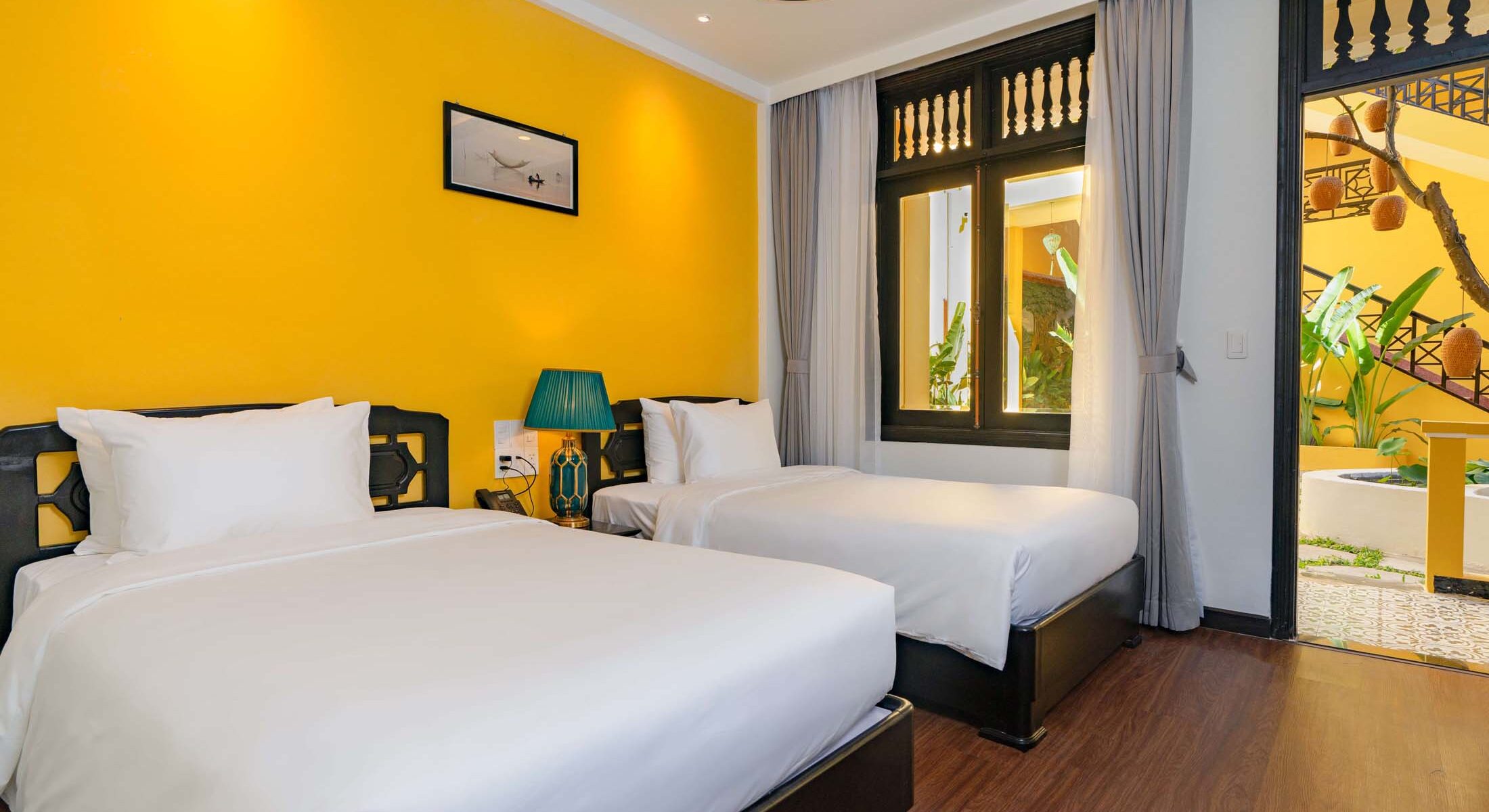 Lantern Boutique Hoi An gồm những dãy nhà thấp tầng, được bao quanh bởi khu vườn xanh tươi và những lối mòn dẫn đến các phòng nghỉ. Mỗi không gian là sự hòa quyện giữa nét mộc mạc Pháp và tinh thần Việt, mang lại cảm giác an yên và gần gũi như đang sống trong một căn nhà nhỏ giữa lòng phố cổ.